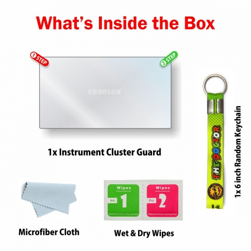 * Screen protector from scratches, impact, heat and UV * Seals existing scratches underneath and makes the Screen protector shines like new again * Easy to clean and wipe the dirt off without the fear to scratch the Screen protector * Make your motorcycle display screen will always looks like new * Scratch Resistant, Bubble Free, No Residue, Tailored Fit, Premium Feel and Easy to Install * Once Installed it is almost Invisible