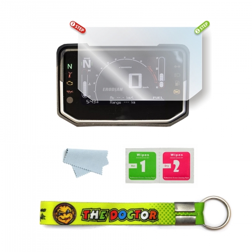 * Screen protector from scratches, impact, heat and UV * Seals existing scratches underneath and makes the Screen protector shines like new again * Easy to clean and wipe the dirt off without the fear to scratch the Screen protector * Make your motorcycle display screen will always looks like new * Scratch Resistant, Bubble Free, No Residue, Tailored Fit, Premium Feel and Easy to Install * Once Installed it is almost Invisible