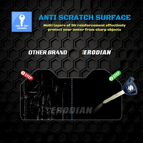 * Screen protector from scratches, impact, heat and UV * Seals existing scratches underneath and makes the Screen protector shines like new again * Easy to clean and wipe the dirt off without the fear to scratch the Screen protector * Make your motorcycle display screen will always looks like new * Scratch Resistant, Bubble Free, No Residue, Tailored Fit, Premium Feel and Easy to Install * Once Installed it is almost Invisible