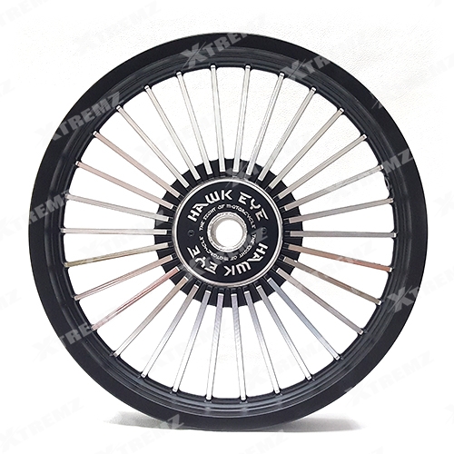 1) HAWK EYE Wheels (orginal) 2) Heavy die casted aluminium Quality Alloy Wheels 3) Anti-rust, anti-explosion and perfect for all weather drive 4) Tube & Tubeless tires in comparison to spoke rims 5) Quantity 2 pieces 6) Front Wheel Size = 19 Inch / Rear Wheel Size = 18 Inch